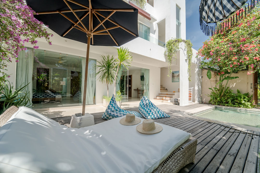A luxury villa blending contemporary architecture with a traditional Javanese Joglo. Located on a quiet alley within walking distance to the beach, featuring a 14-meter pool, tropical open-air living spaces, and a rooftop terrace with breathtaking sunset views.